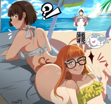 411102 BoobsHentai Boobs – 1boy 2 girls ass beach beach towel beach umbrella bikini breasts brown hair by ShadowNanako