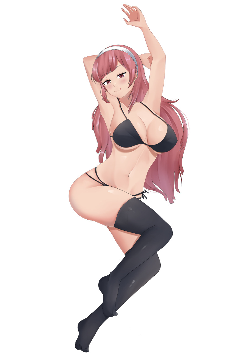 416107 NintendoHentai Nintendo – 1girl 1girl 1girl absurd res alluring arm behind head arms up black underwear by calum1998