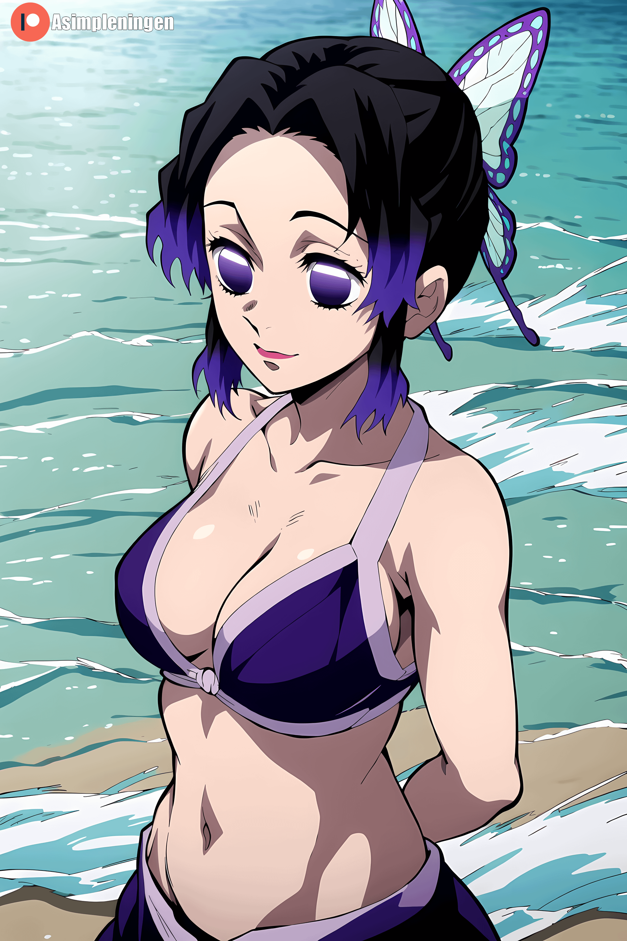 414105 NipplesHentai Nipples – big breasts black hair butterfly hair ornament demon slayer kimetsu no yaiba by nekom14